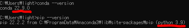 유형 conda –version