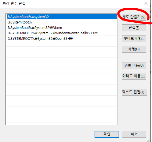 새로 만들기를 클릭합니다.