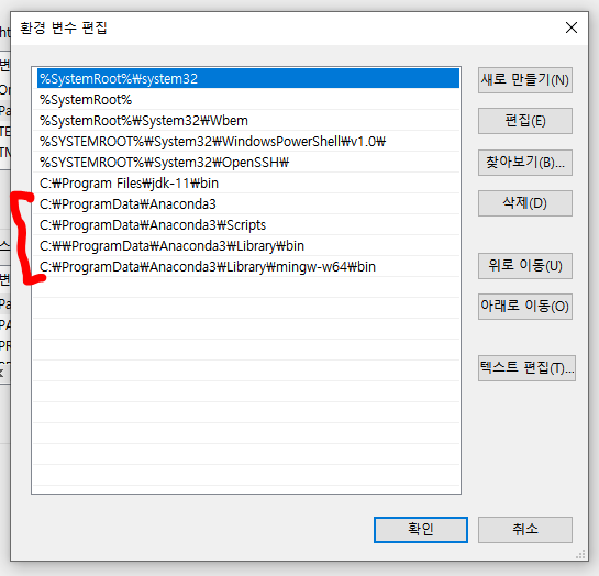 아나콘다 환경 변수 설정