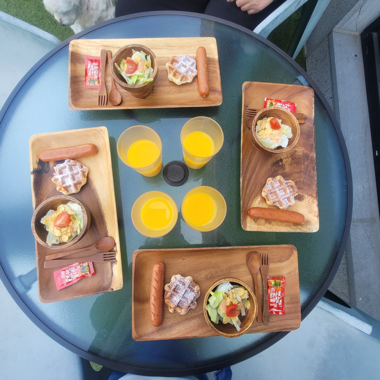 3시. 체크인 시간에 맞춰 도착해서 본 곳은 너무 예뻤다. 조식도 미리 주문해서 먹을 수 있어서 좋았습니다. 도착하자마자 Jelly와 Kano는 신이 나서 다른 강아지들에게 인사하고 놀았습니다.