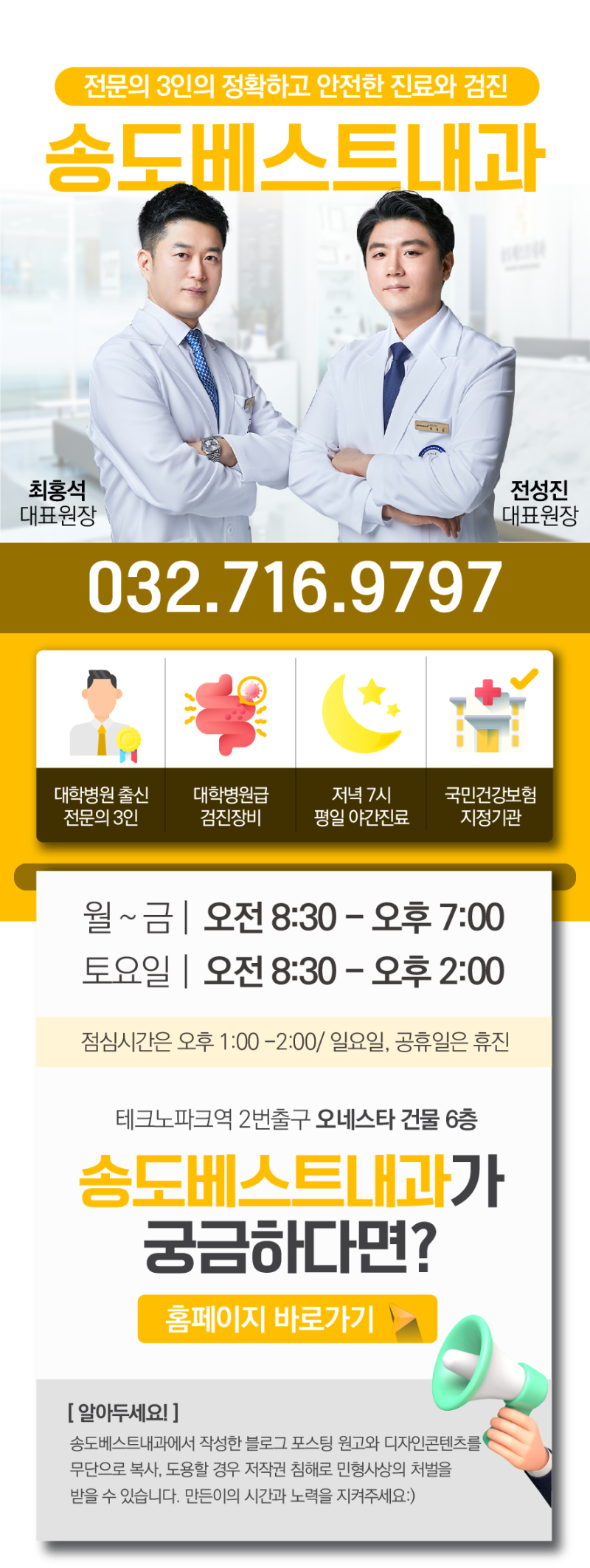 안녕하세요? 송도에서 안전한 수면내시경을 시행할 수 있는 송도 최고의 내과입니다. 오늘은 수면위대장내시경 검사 시 주의사항에 대해 소개해드리겠습니다. 첫 수면내시경입니다.